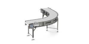 - 🔹 Convoyeurs courbes à tapis modulaire – Convient aux environnements alimentaires et pharmaceutiques.